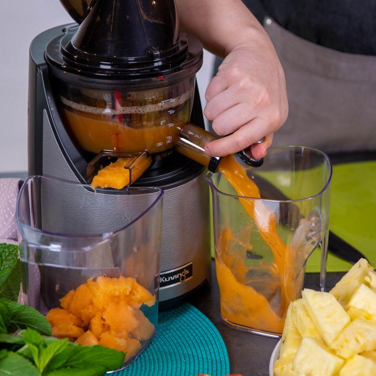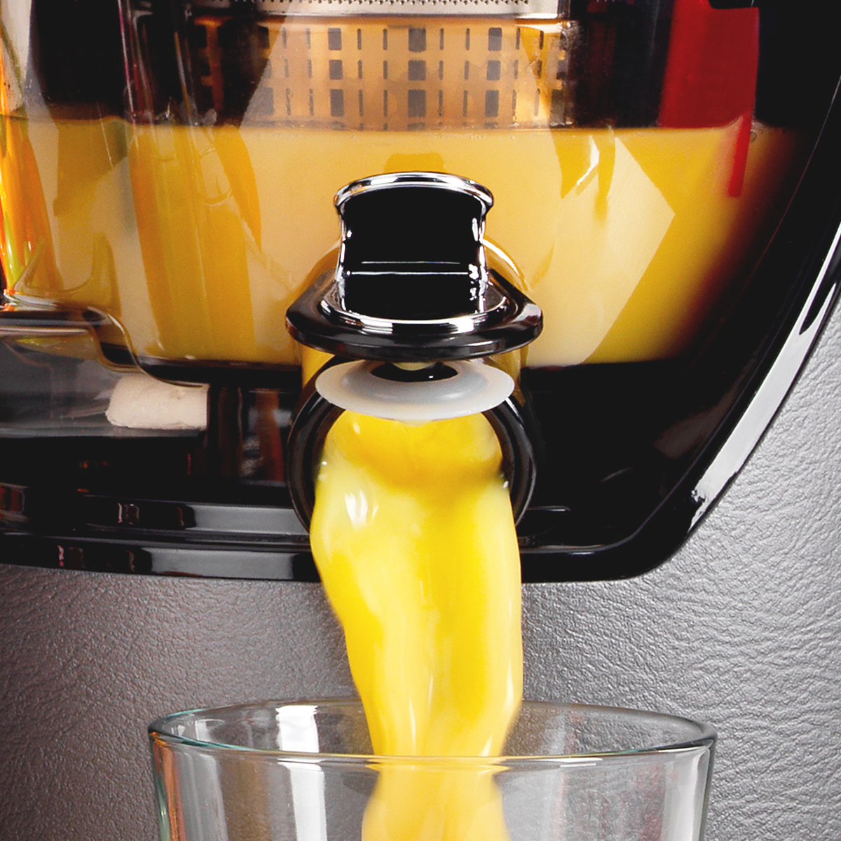 Equipped with a wide 82mm opening, the EVO820 can juice whole fruits and vegetables. Consumers rave about its luxurious leather-like design, low noise level, and healthy juice.