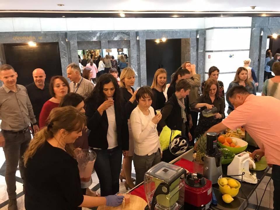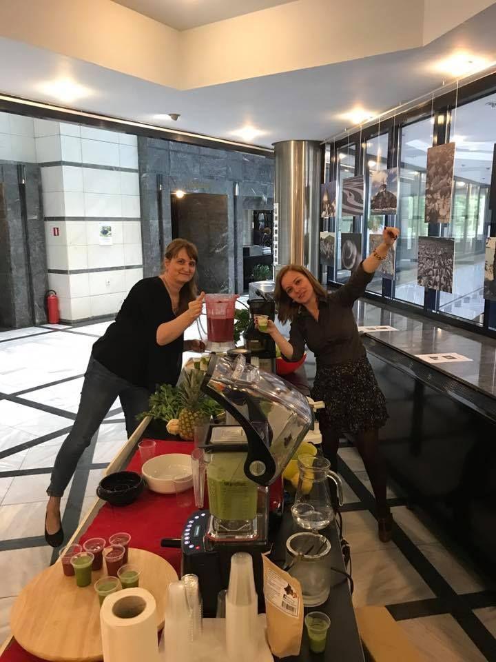 INA employees took a minute for their health with the famous fitness trainer Ultrafit by Renata Sopek and learned how to exercise properly in the office. After the workout, the employees refreshed themselves with our cold-pressed juices and smoothies, which we prepared for INA employees in the Management Building itself, after a well-done workout with our famous fitness trainer Renata Sopek!