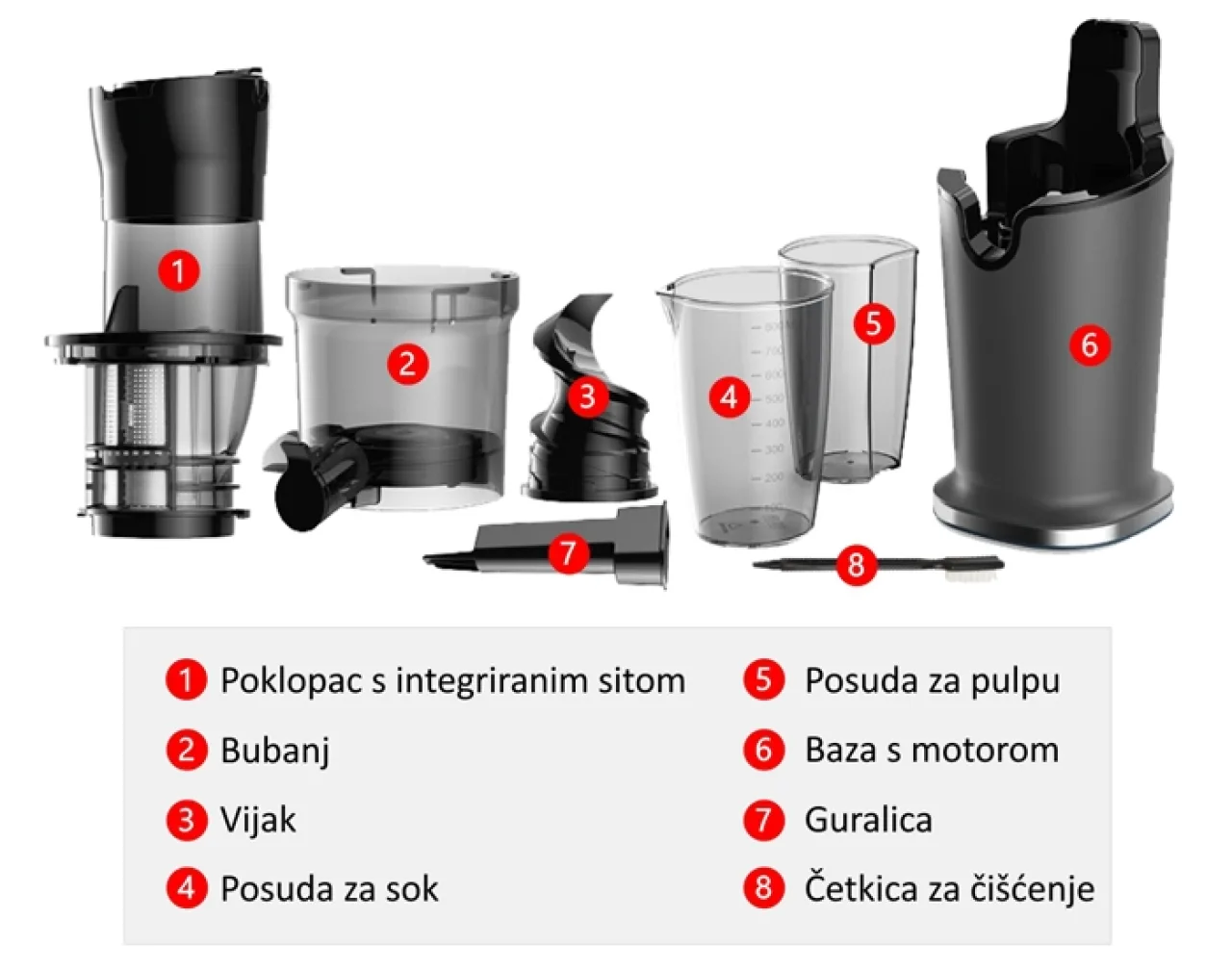 Cleaning , as well as juicing itself, is extremely easy and fast , because the VerVita Mini does not have a separate sieve, but rather one is integrated into the lid itself. After juicing, all you need to do is rinse all parts under running water and brush the metal part (sieve) on the lid!