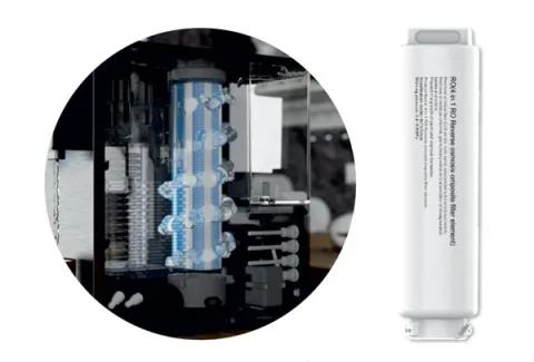 Ovaj uređaj koristi sustav filtracije reverznom osmozom, brzog zagrijavanja vode, kompresorskog hlađenja i karboniziranja (gaziranja) vode, sve u jednom stolnom uređaju.